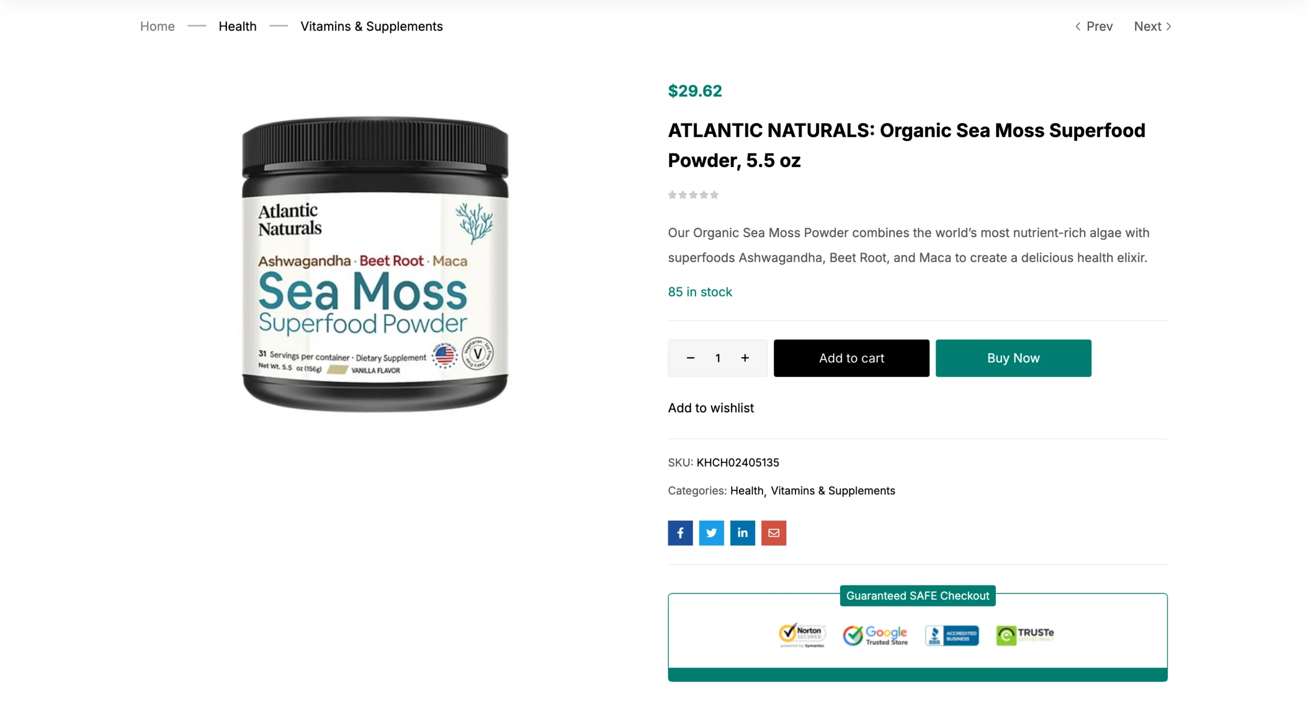 Создан современный интернет-магазин для американского бренда, специализирующегося на экологичных и органических продуктах питания и добавках.