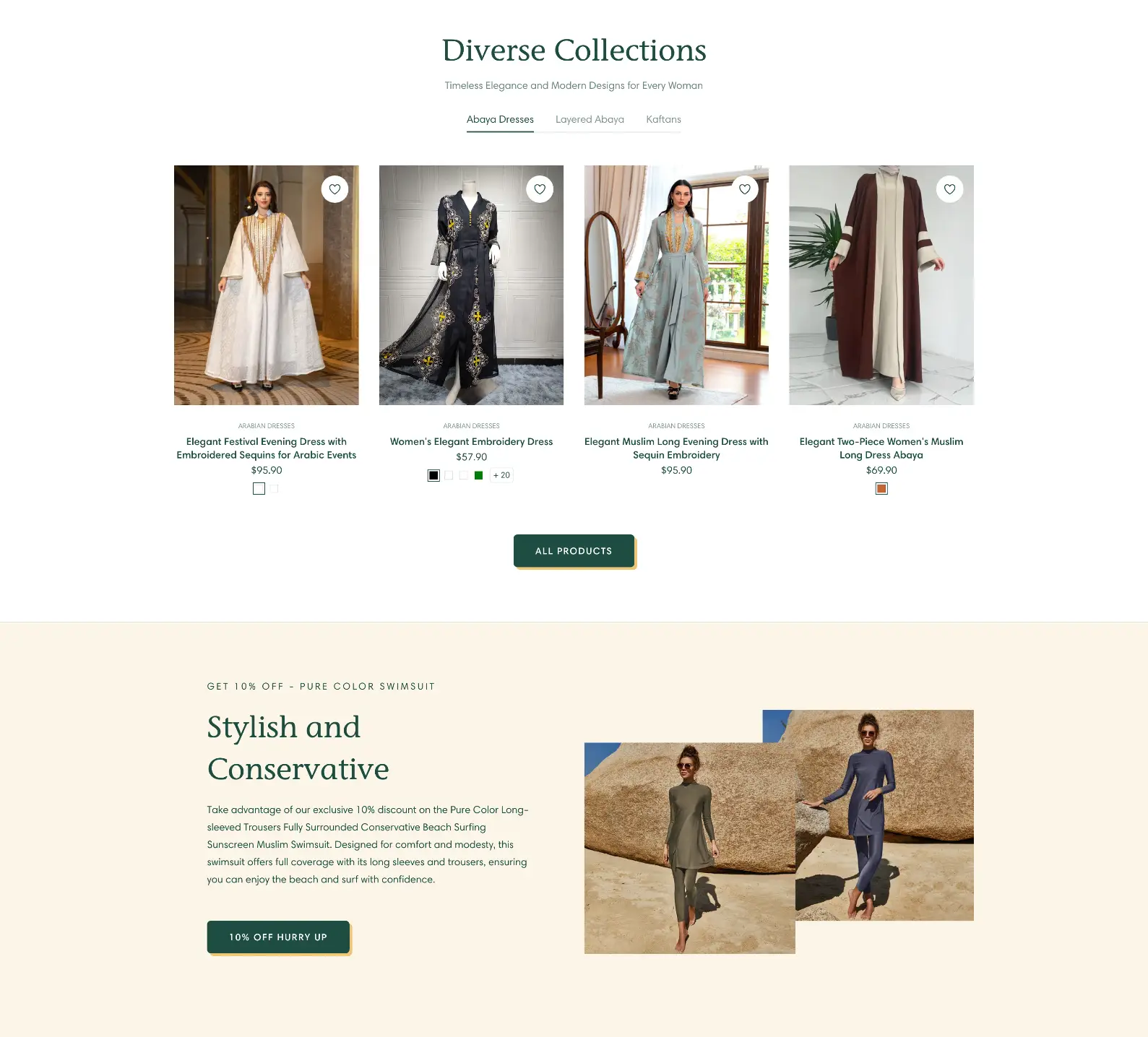 Дизайн сайта выполнен в элегантных тонах, подчеркивающих роскошь и утонченность арабских нарядов. Реализована удобная навигация по каталогу, позволяющая посетителям легко находить желаемые модели платьев и аксессуаров.