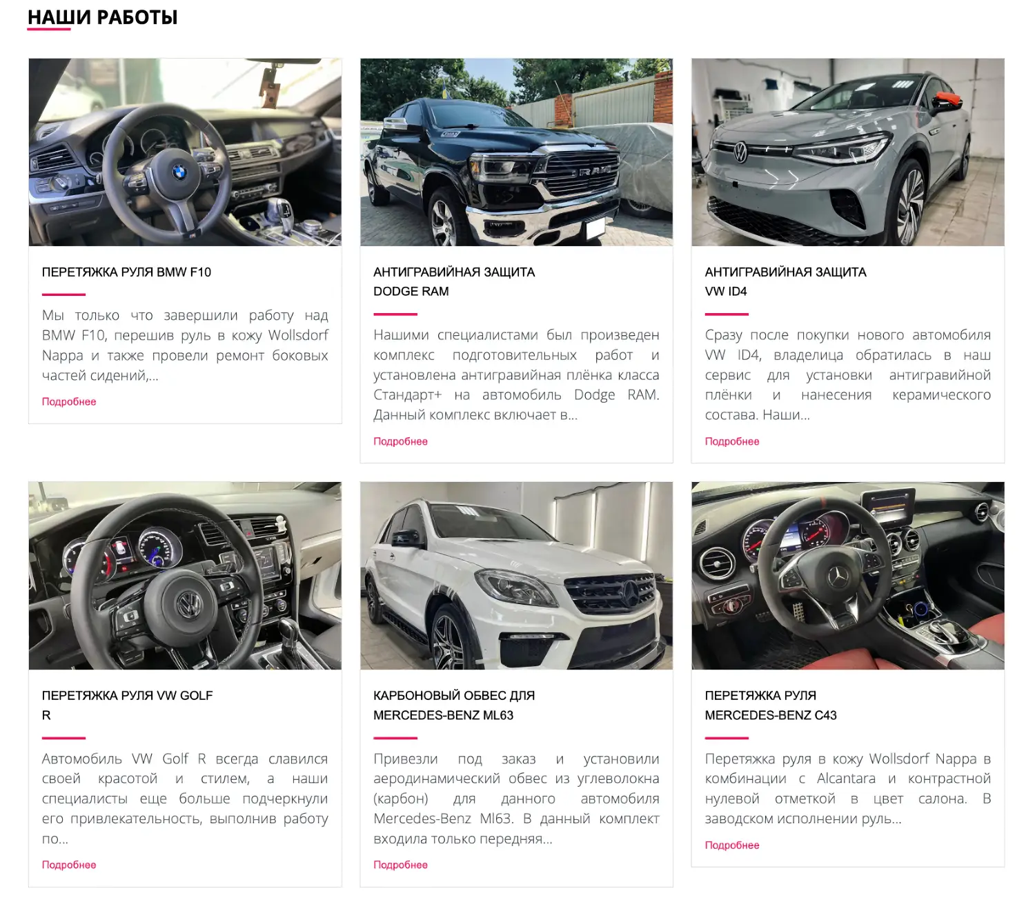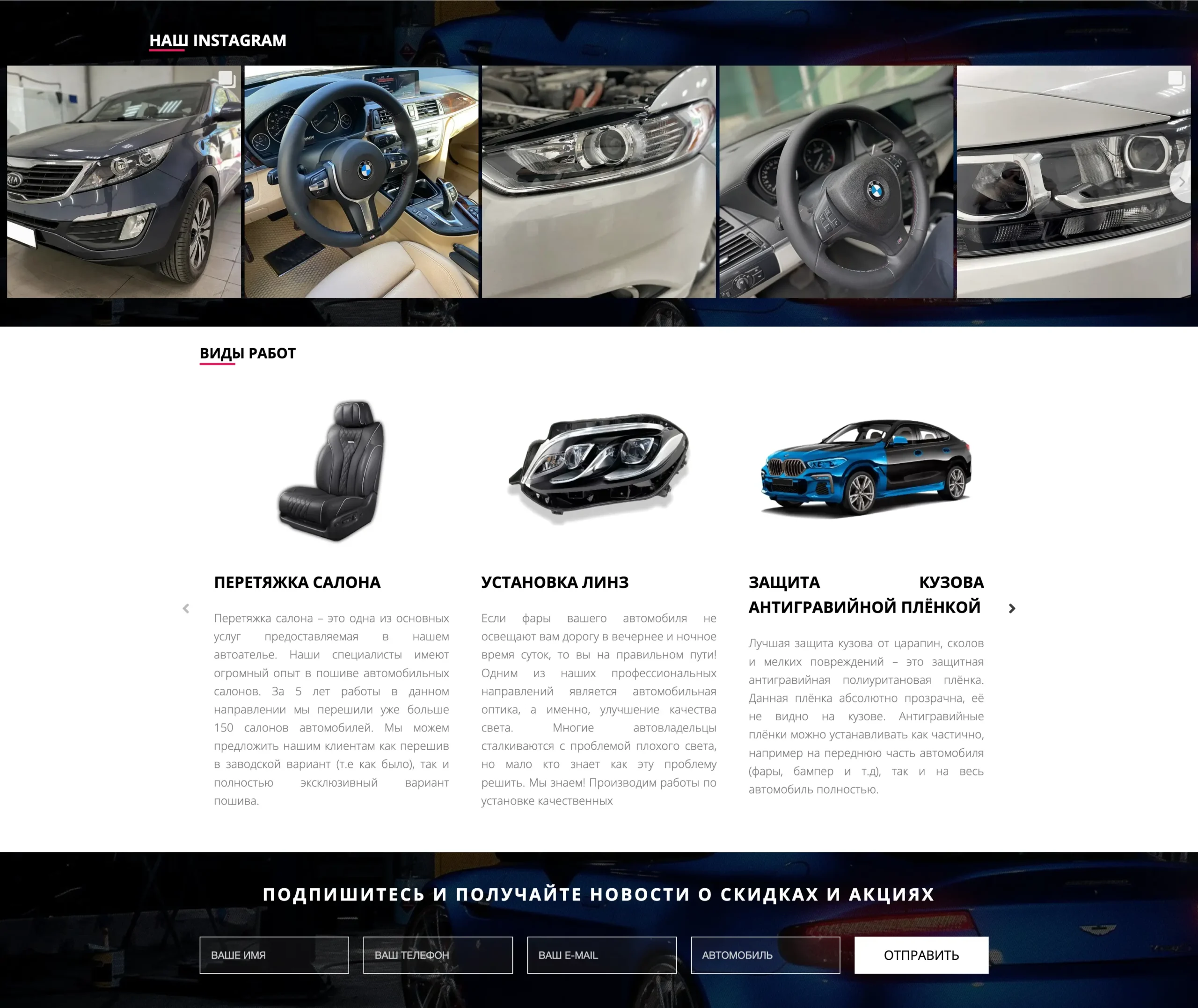 Разработан стильный и функциональный веб-ресурс, отвечающий всем стандартам современного веб-дизайна и потребностям целевой аудитории тюнинг-ателье.